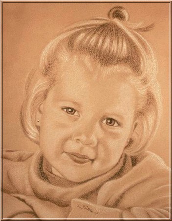 Kinderportrait auf Aquarellpapier (36x48 cm) Mischtechnik: Acrylfarbe gesprüht, Detailausarbeitung mit Buntstift und Pastell