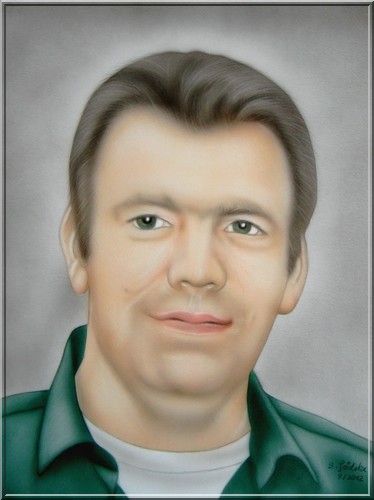 Personenportrait auf Aquarellpapier (36x48 cm) Mischtechnik: Acrylfarbe gesprüht, Detailausarbeitung mit Buntstift.