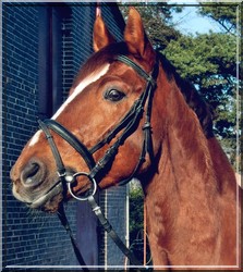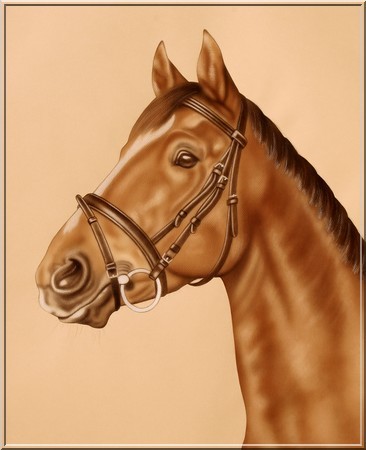 Pferdeportrait auf hellockerfarbenem MI-Teintes Cansonpapier (50x65 cm) in Airbrushtechnik, Detailausarbeitung mit Buntstift, Pastell, Lichter radiert. (Auftragsarbeit)