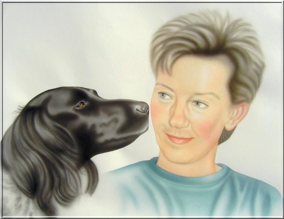 Gemeinschaftsportrait auf weißem MI-TEINTES Cansonpapier (50x65 cm) Mischtechnik: Airbrush, Details mit Buntstift ausgearbeitet, Lichter radiert (Auftragsarbeit)