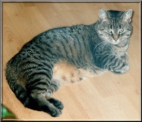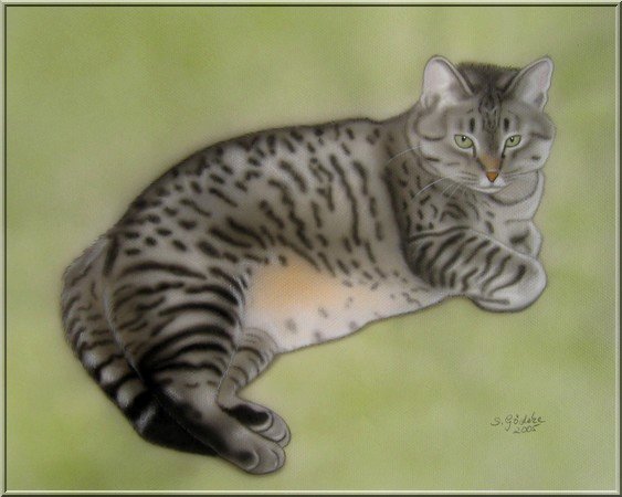Katzenportrait auf weißem, geprägtem Cansonpapier (40x50 cm) Technik: Airbrush-Mischtechnik (Auftragsarbeit)